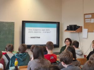 W dniu 30.03.2026 r. uczniowie klas VI, VII i VIII naszej szkoły uczestniczyli w spotkaniu z Panią Doktor Olgą Kula-Fediuk, którego tematem była szkodliwość spożywania napojów energetycznych jak również skutki sięgania po substancje tytoniowe i nikotynę. 🥫
