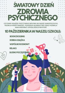 Corocznie 10 października obchodzony jest Światowy Dzień Zdrowia Psychicznego . Celem tego święta jest propagowanie zdrowia psychicznego oraz edukowanie społeczeństwa w tym zakresie. Tegoroczne obchody święta w naszej szkole odbywały się pod hasłem: ” Czytanie książek pozytywnie wpływa na zdrowie psychiczne „. Zapraszamy na fotorelację.